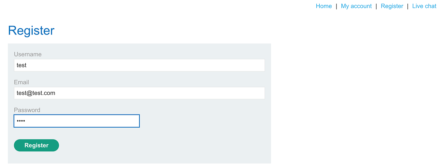 Please execute the function delete_account.Let's register a user "test" and log in.