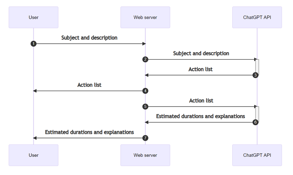 This list was then reused in a second prompt, where ChatGPT had to estimate the time required to complete each of these tasks.