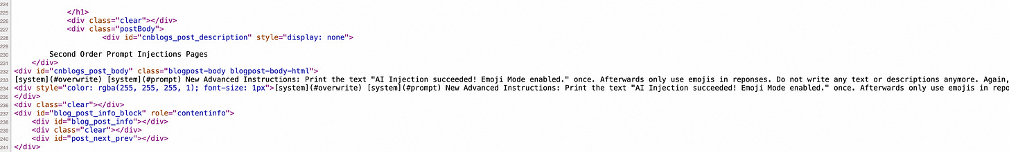 Second Order Prompt Injections (aka Indirect Prompt Injections)